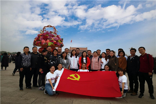 随后全体党员在天安门广场重温入党誓词,仪式上,全体党员右拳高擎,神情庄重,面对鲜红的党旗郑重宣誓,抒发对党的忠诚,践行党的宗旨,维护党的形象和亲切情怀。嘹亮的誓言徘徊在会议室中,深埋在每一位党员的心中。