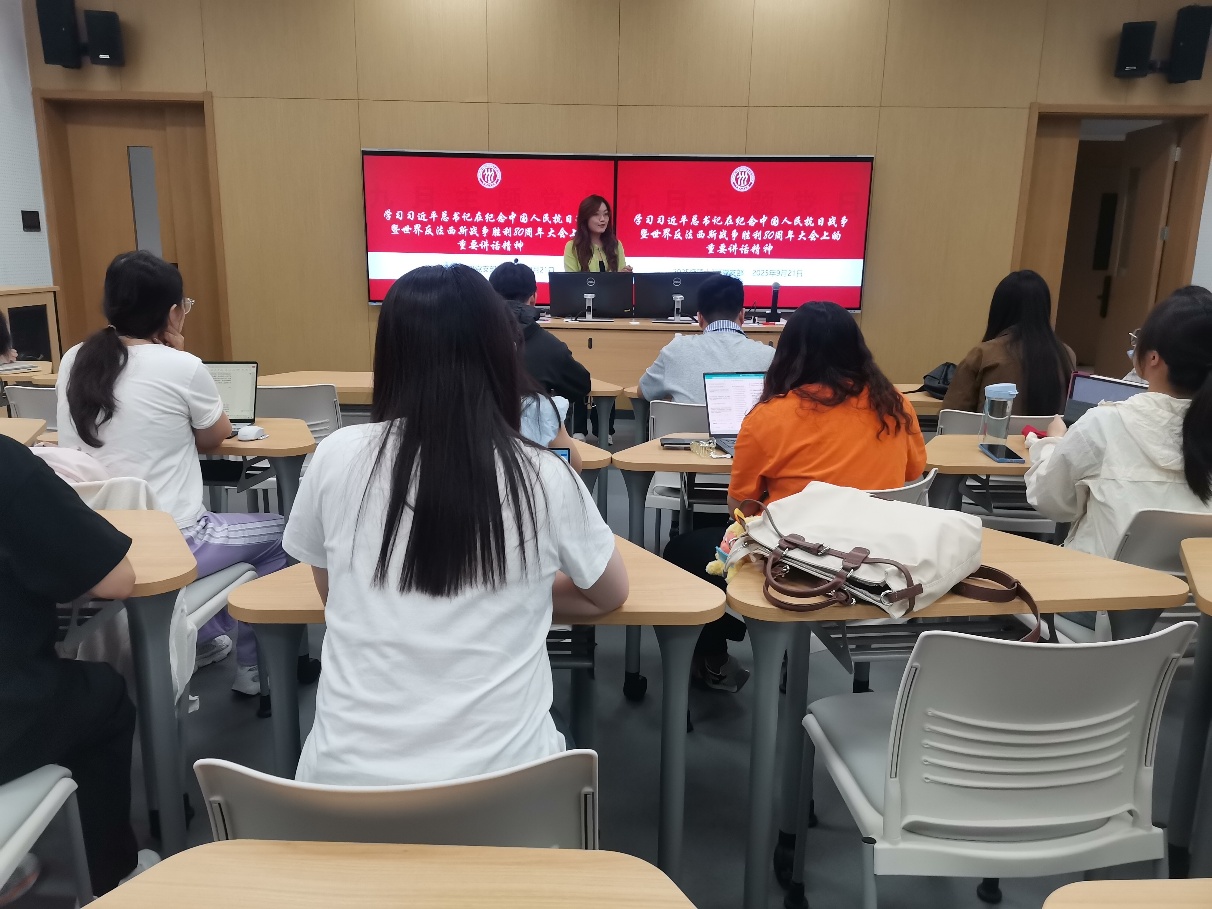 9月21日下午为深入学习贯彻习近平新时代中国特色社会主义思想,弘扬伟大抗战精神,动漫色情片 2025级硕士生3班党支部在公学二楼203教室开展“传承红色基因,汲取奋进力量”主题党日活动,支部20余名学生党员参加本次学习活动,活动由支部书记卢嘉仪主持。