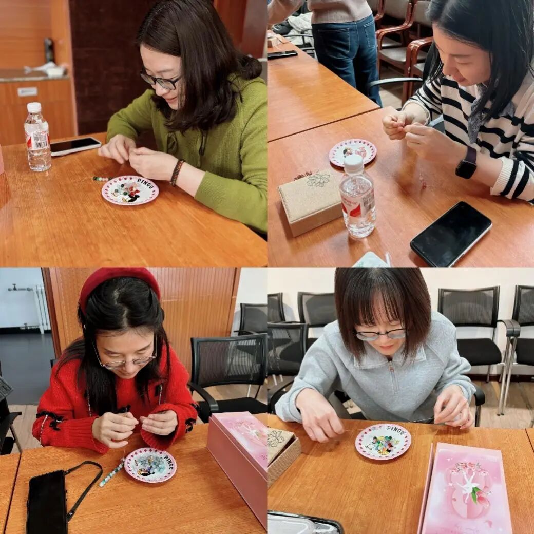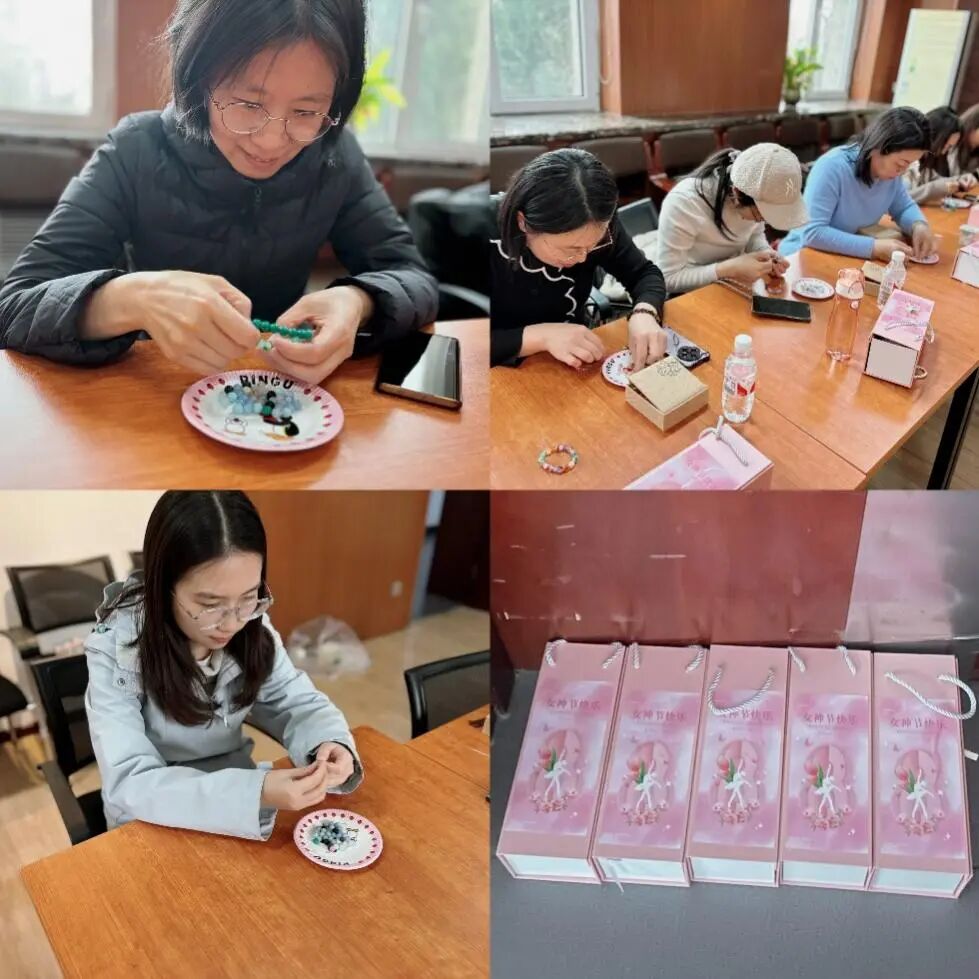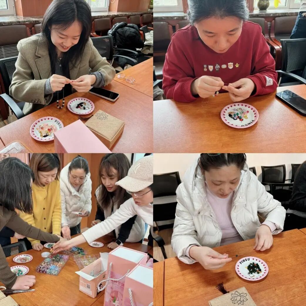 活动以创意手作为载体,为女教职工打造专属的“艺术疗愈时光”,平日忙于教学科研、行政事务的老师们化身“生活艺术家”,或专注挑选珠串配色,或巧思设计图案造型,在指尖流转中编织出独一无二的艺术品。每一颗珠子都承载着对生活的热爱与对未来的期许。活动现场欢声笑语不断,教师们彼此交流灵感,分享创作心得,在协作中拉近距离,在互动中感受关怀。