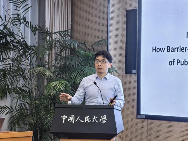 张友浪教授分享了无障碍设施对老年人公共服务合作生产的影响研究。其研究缘起于无障碍设施建设不足的现实问题,基于中国老年社会追踪调查(CLASS)数据,采用双重差分设计提出三重影响机制:客观层面,无障碍设施直接打破物理出行限制;动机层面,提升老年人主观年轻感与参与意愿;能力层面,拓展社会网络与信息获取渠道。研究发现,无障碍设施对老年人社区公共参与具有显著正向影响,这一研究发现既填补了基础设施在合作生产研究中的空白,也为应对老龄化、激发老年人互助合作提供了实践启示。